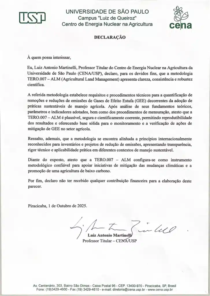 We count on your collaboration to help TERO.007 become a benchmark for credibility, technical rigor, and applicability in Brazil’s agricultural carbon sector.